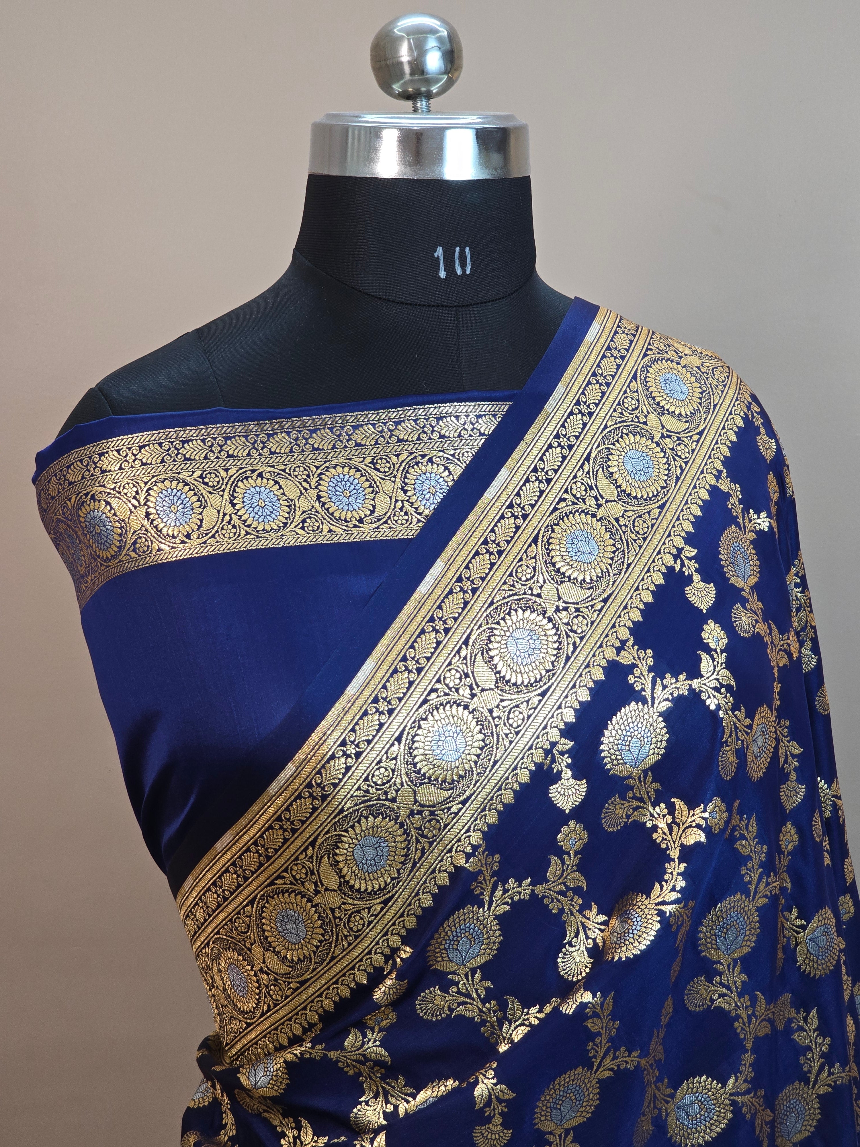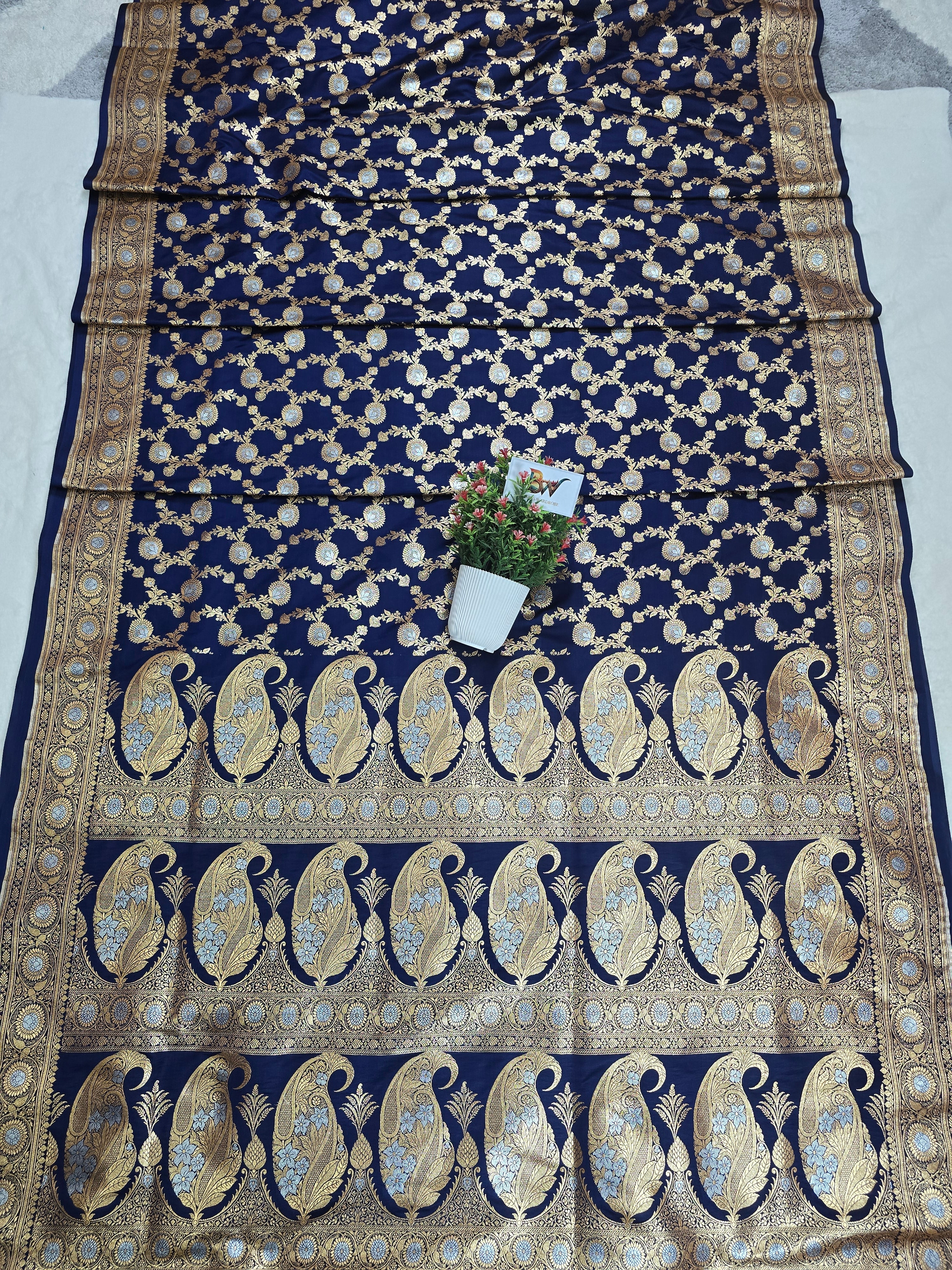 Satin Malai Katan Silk Banarasi Saree – Sona Roopa Zari Meenakari Jaal