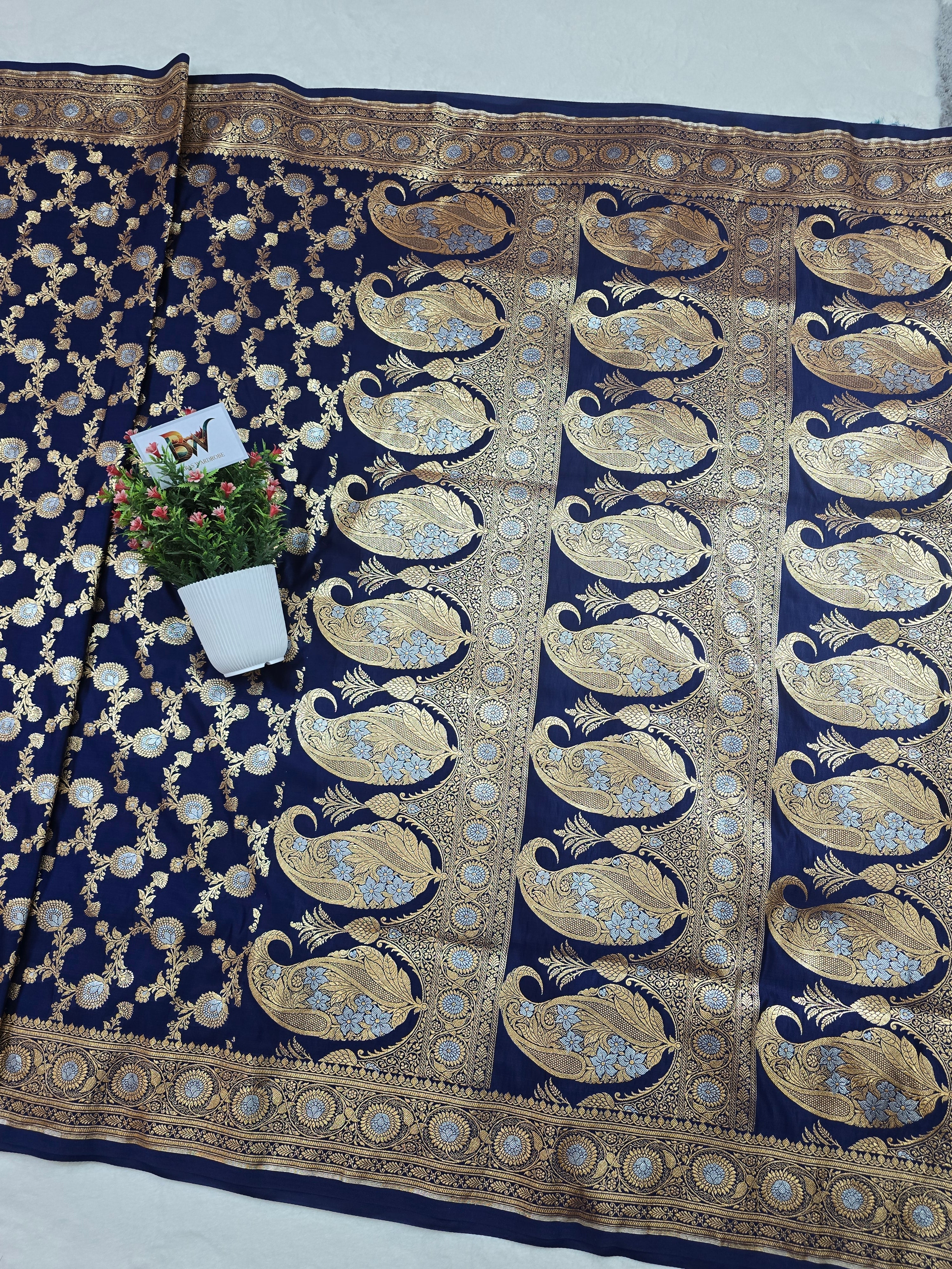Work: Sona Roopa Zari Meenakari Jaal with Sona Roopa Floral Jaal Border