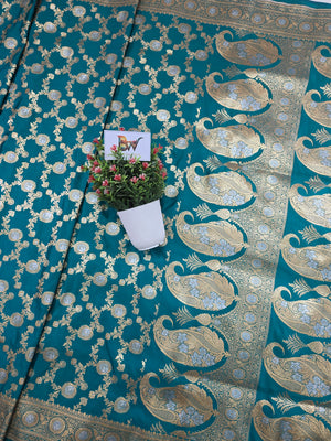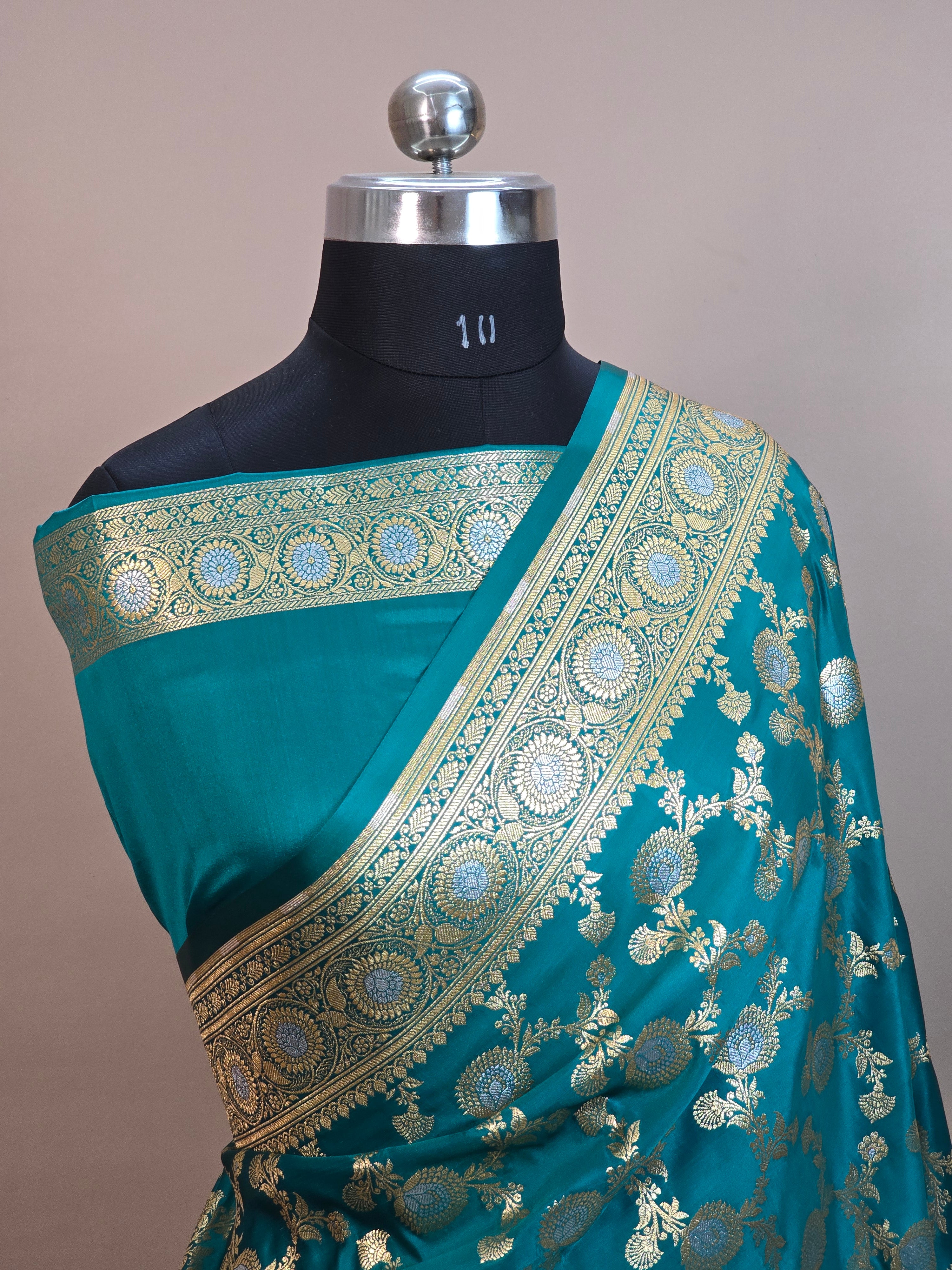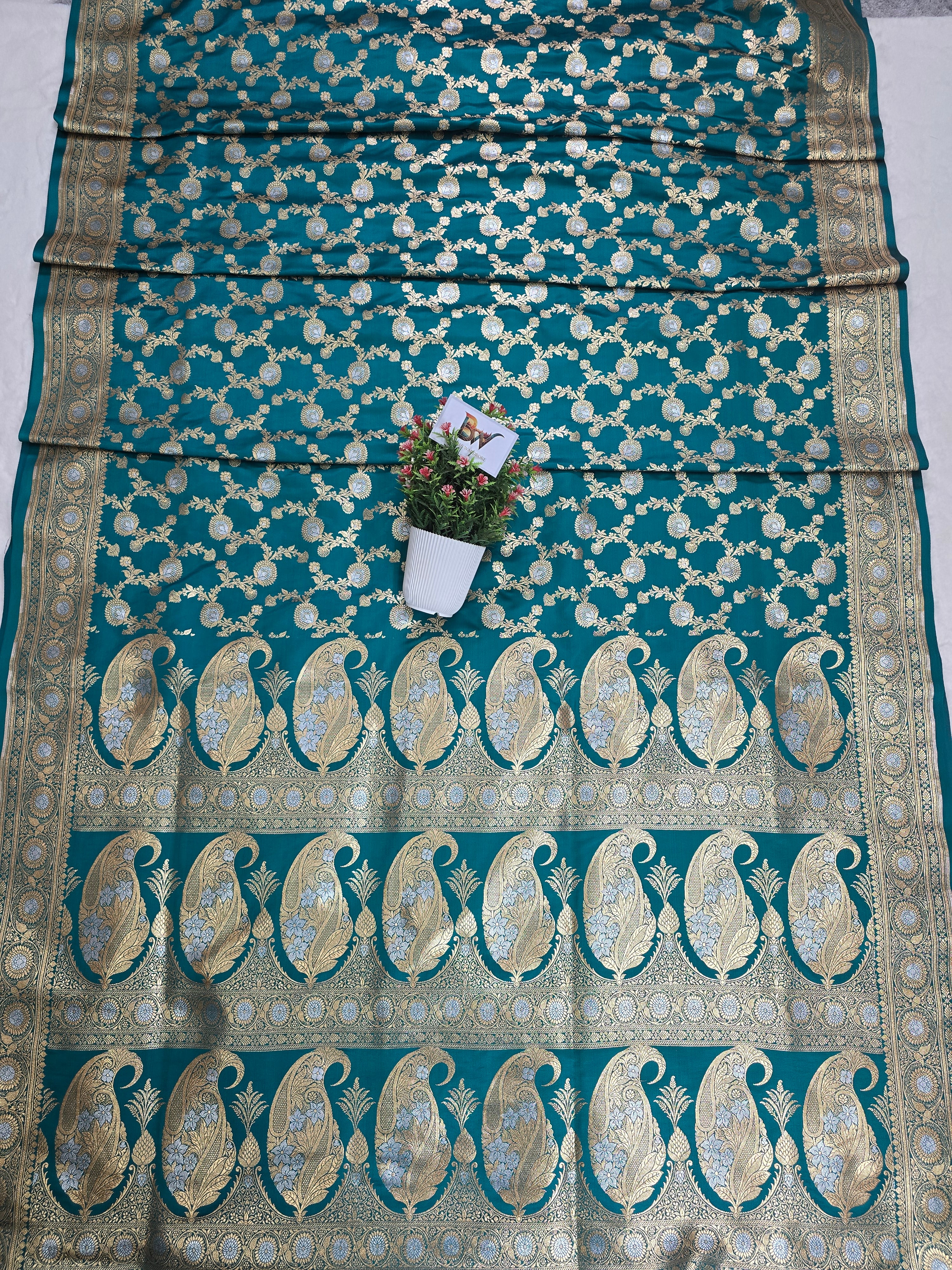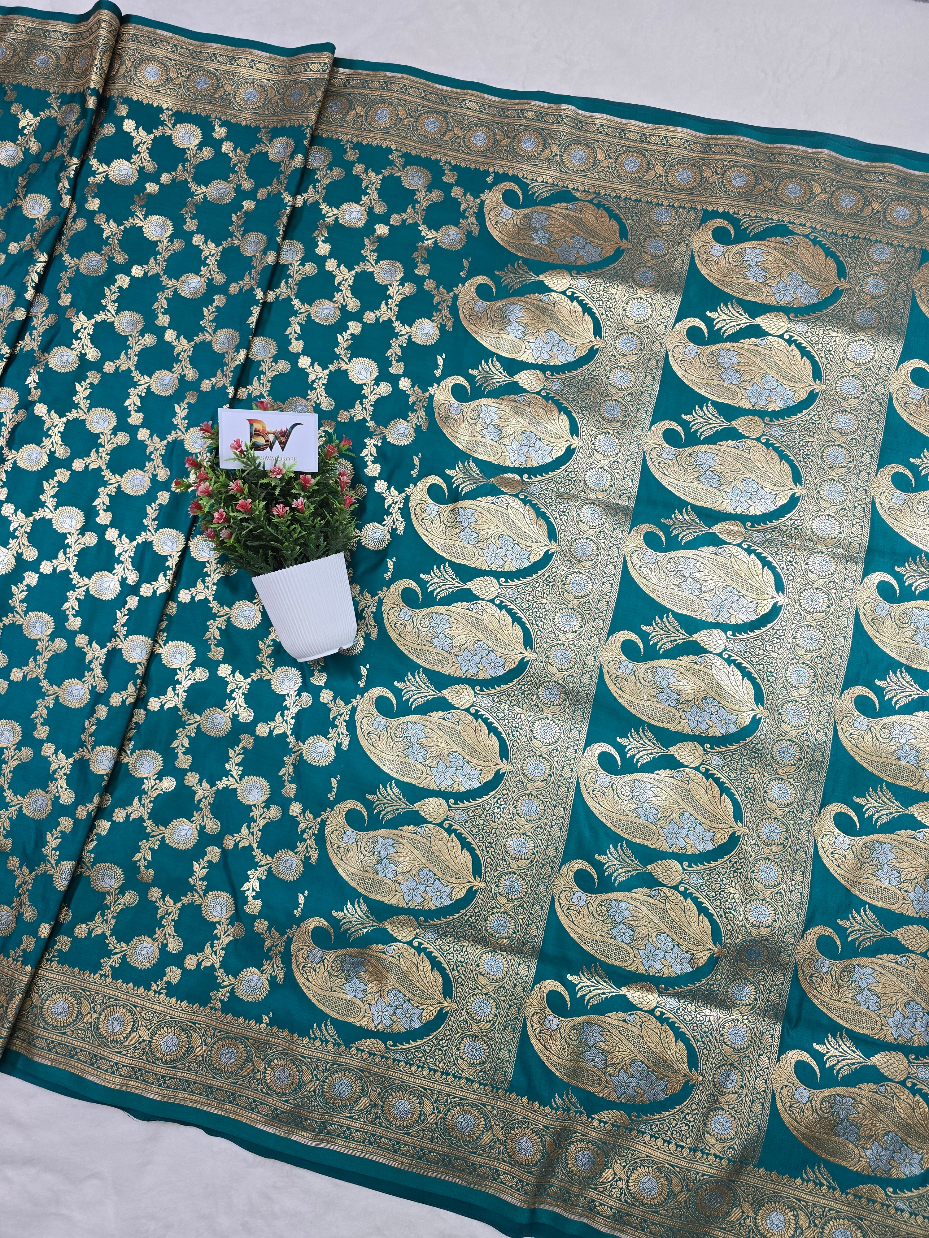 Satin Malai Katan Silk Banarasi Saree – Sona Roopa Zari Meenakari Jaal