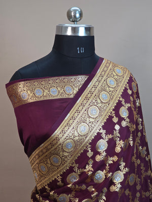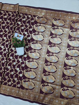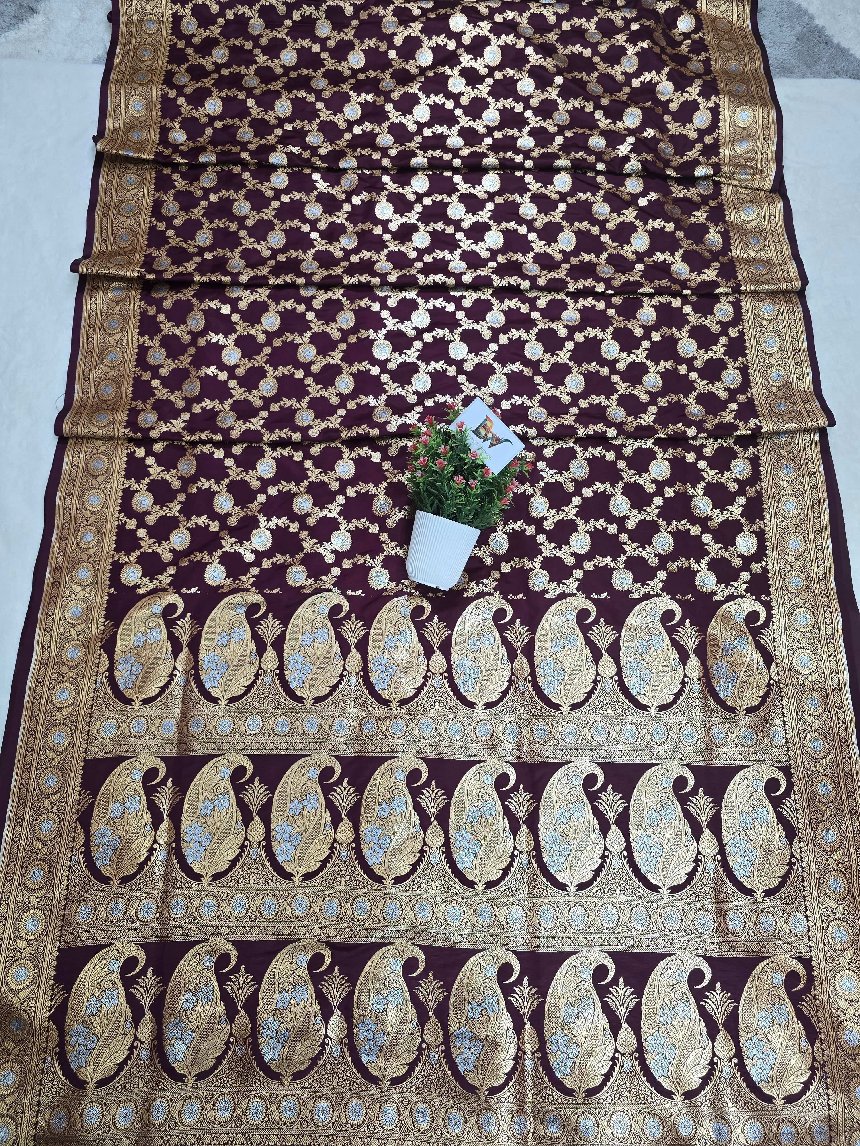 Satin Malai Katan Silk Banarasi Saree – Sona Roopa Zari Meenakari Jaal