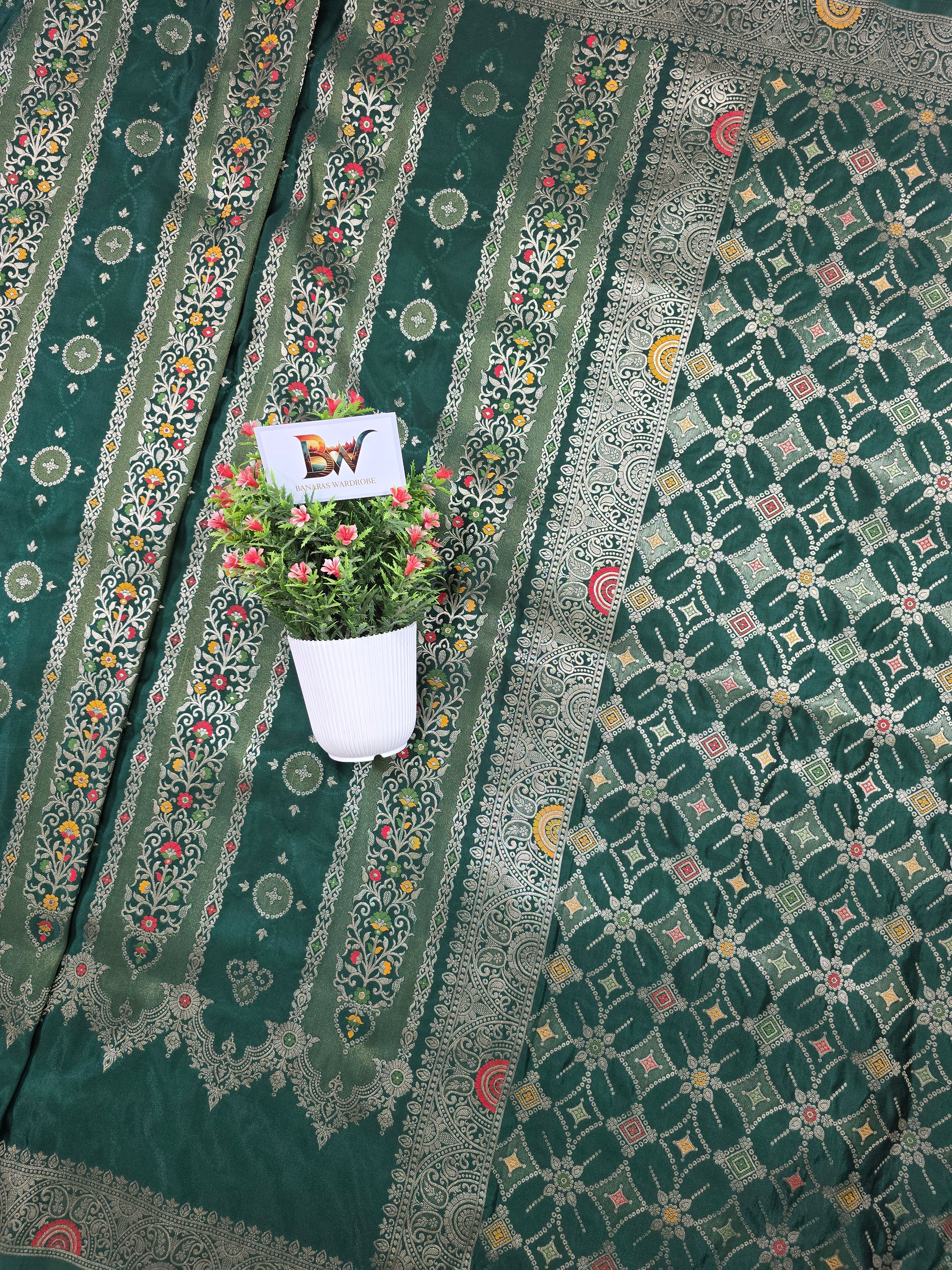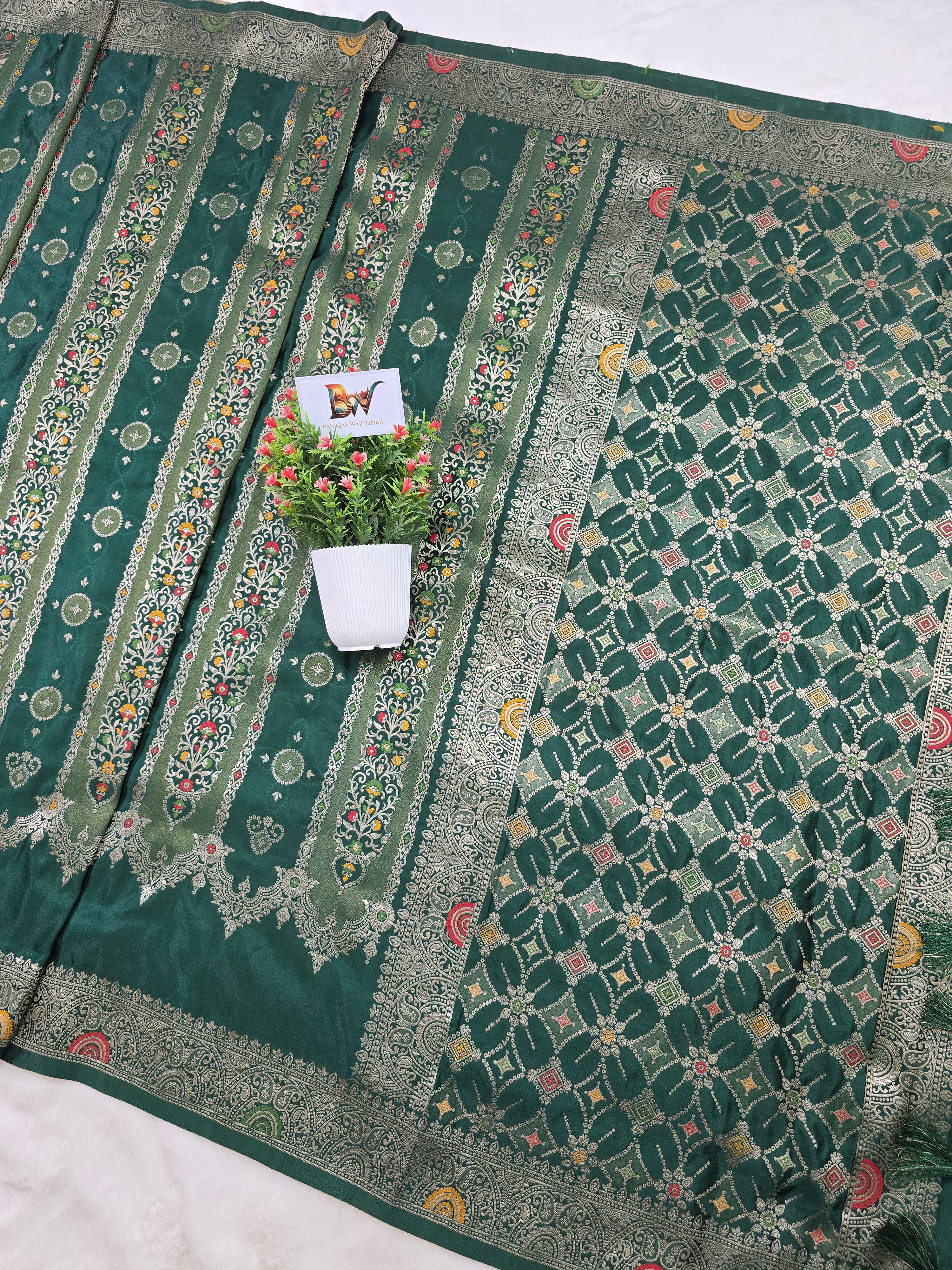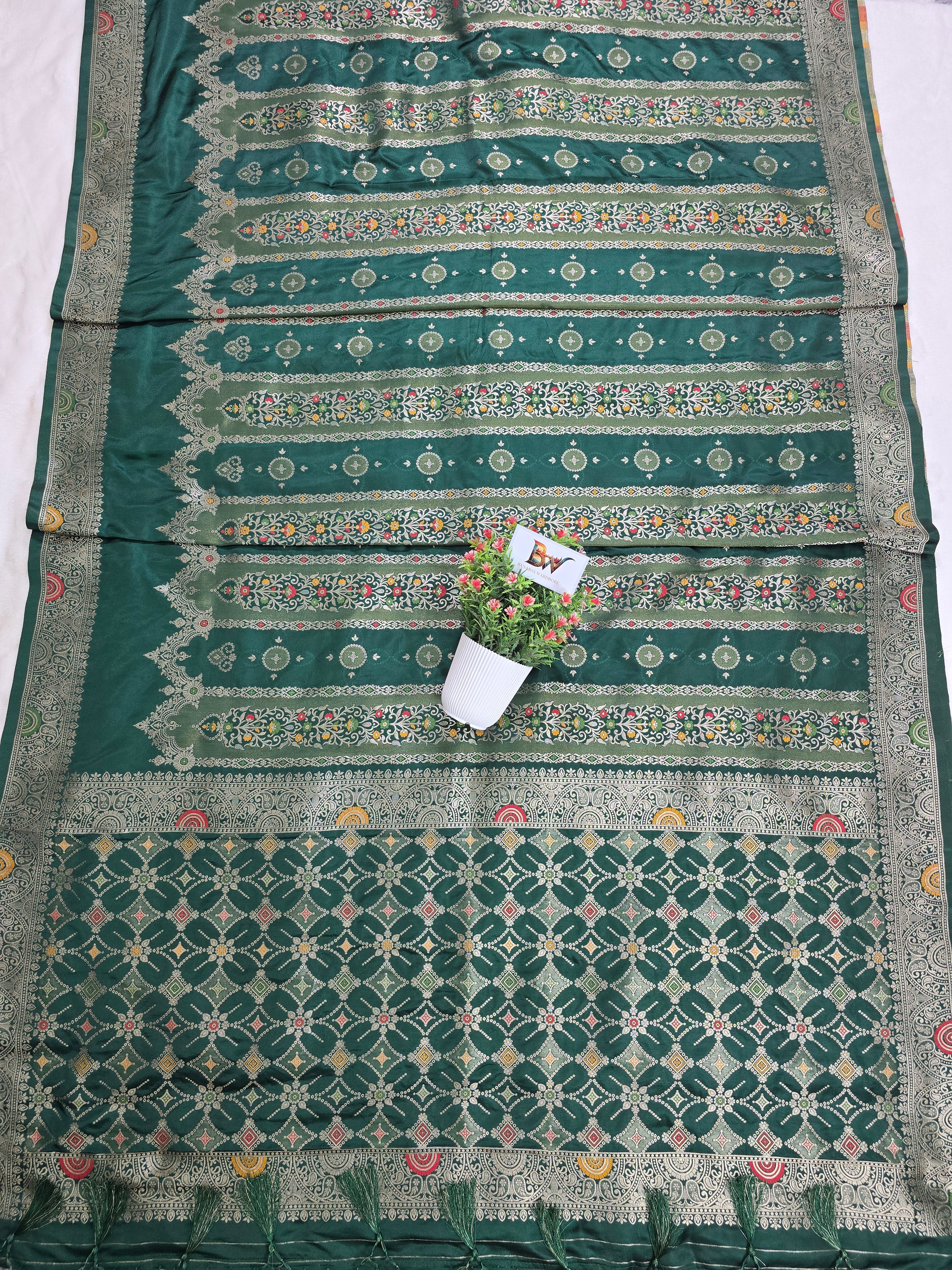 Satin Mashru Silk Tilfi Banarasi Saree with Meenakari Floral Stripe Jaal